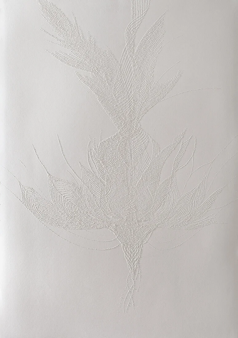 Lift, 2020. Ripped paper drawing on beige paper, 28” x 39”